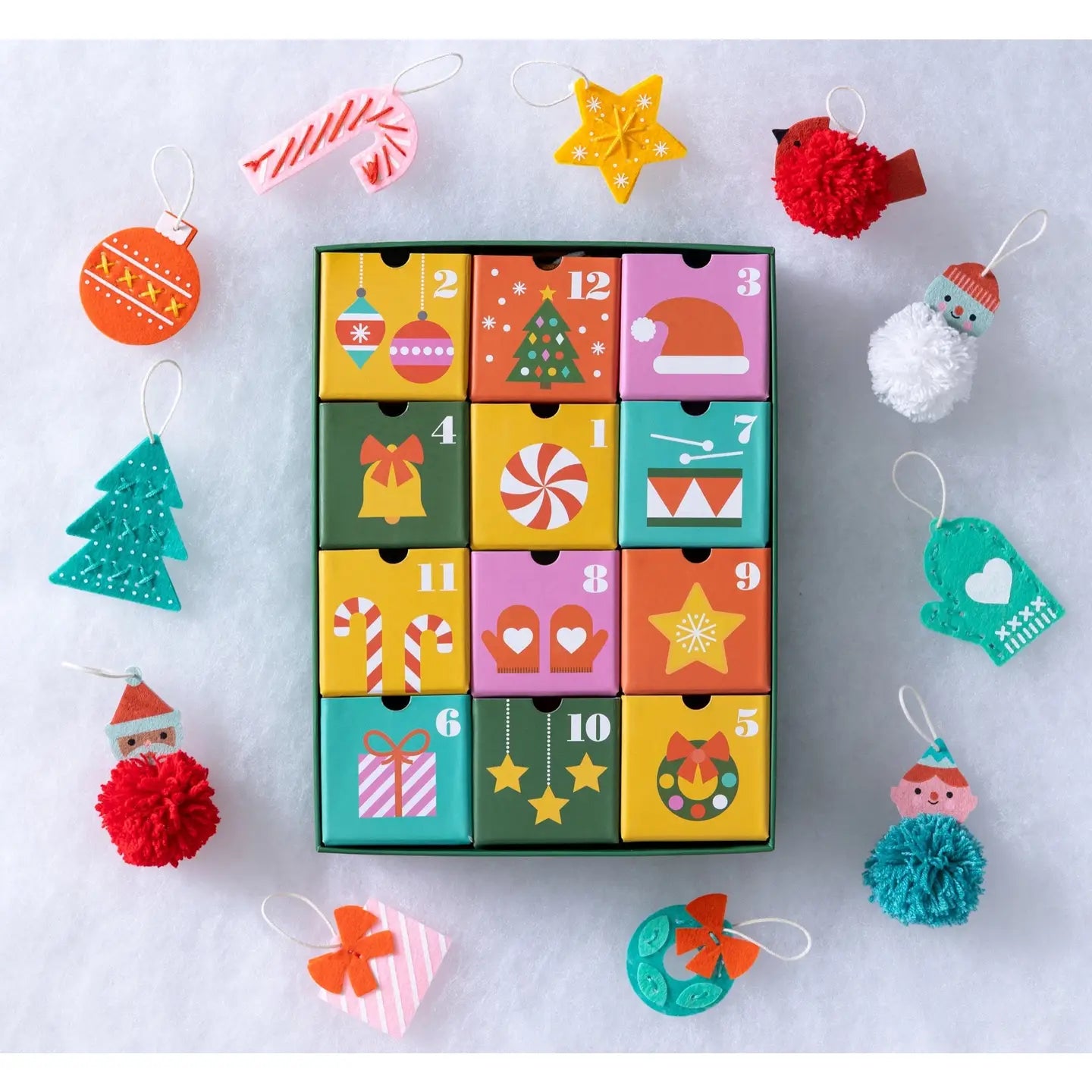 Every day, a little one can slide open one of the drawers to reveal a felt or pom-pom activity. It could be a candy cane ornament, a fluffy Christmas pudding, or an adorable snowman to build! Inside the calendar is everything they’ll need to make twelve holly-jolly decorations to hang on your tree or anywhere else that needs a touch of holiday cheer. When it’s time for the decorations to come down, simply pop them back into the sturdy drawers in any order you like.