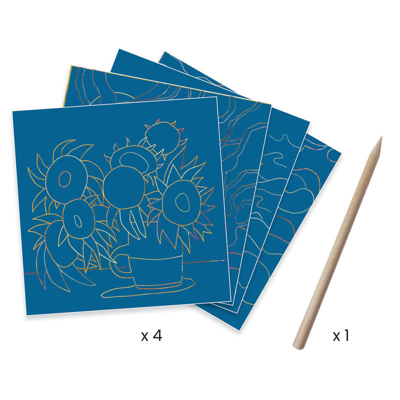 Great art is inspiring! With this resource, however, you can add your own flavor to a famous artist's style and make it your own. Take your turn at chunky VanGogh-inspired paint strokes.  Scratch Cards come in a set of 4 large, coated, pre-printed cards as well as a wooden stylus to create custom designs.