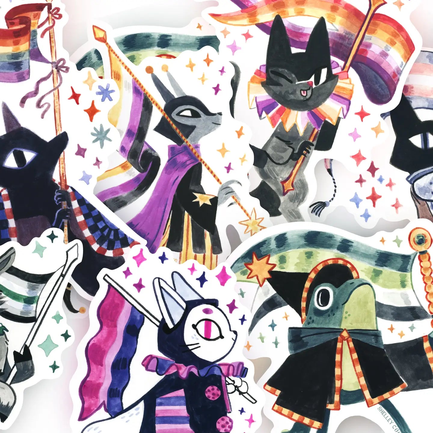 Sassy, stylish, and full of pride — this lesbian pussycat *COUGH* cat is here to steal the spotlight (and maybe your heart). Dressed in a frilly Renaissance collar and waving the lesbian flag, she's showing a little cheeky attitude with that wink!