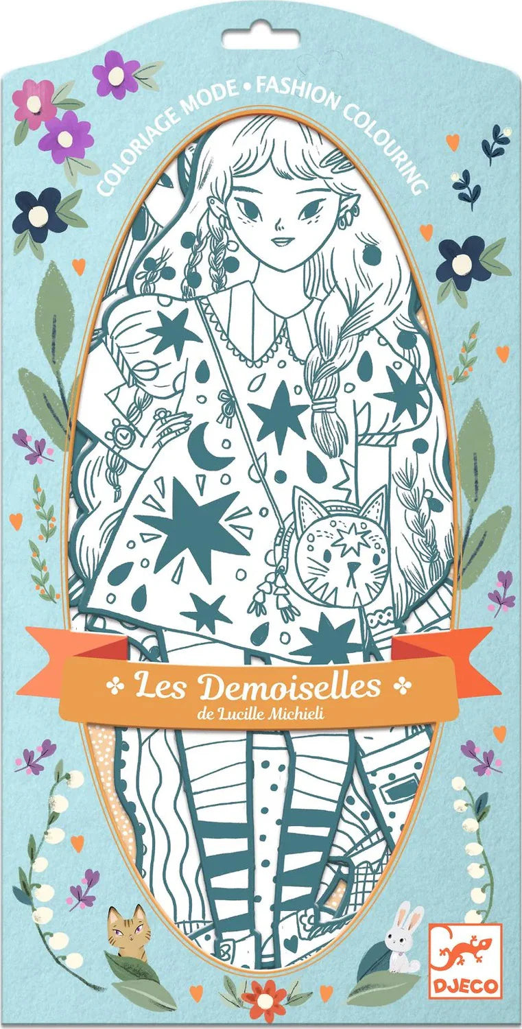 Contents: 4 card outlines to be colored in, adorned with metallic areas.Measurements: 7.09 x 12.6Design by: Lucille Michieli, France