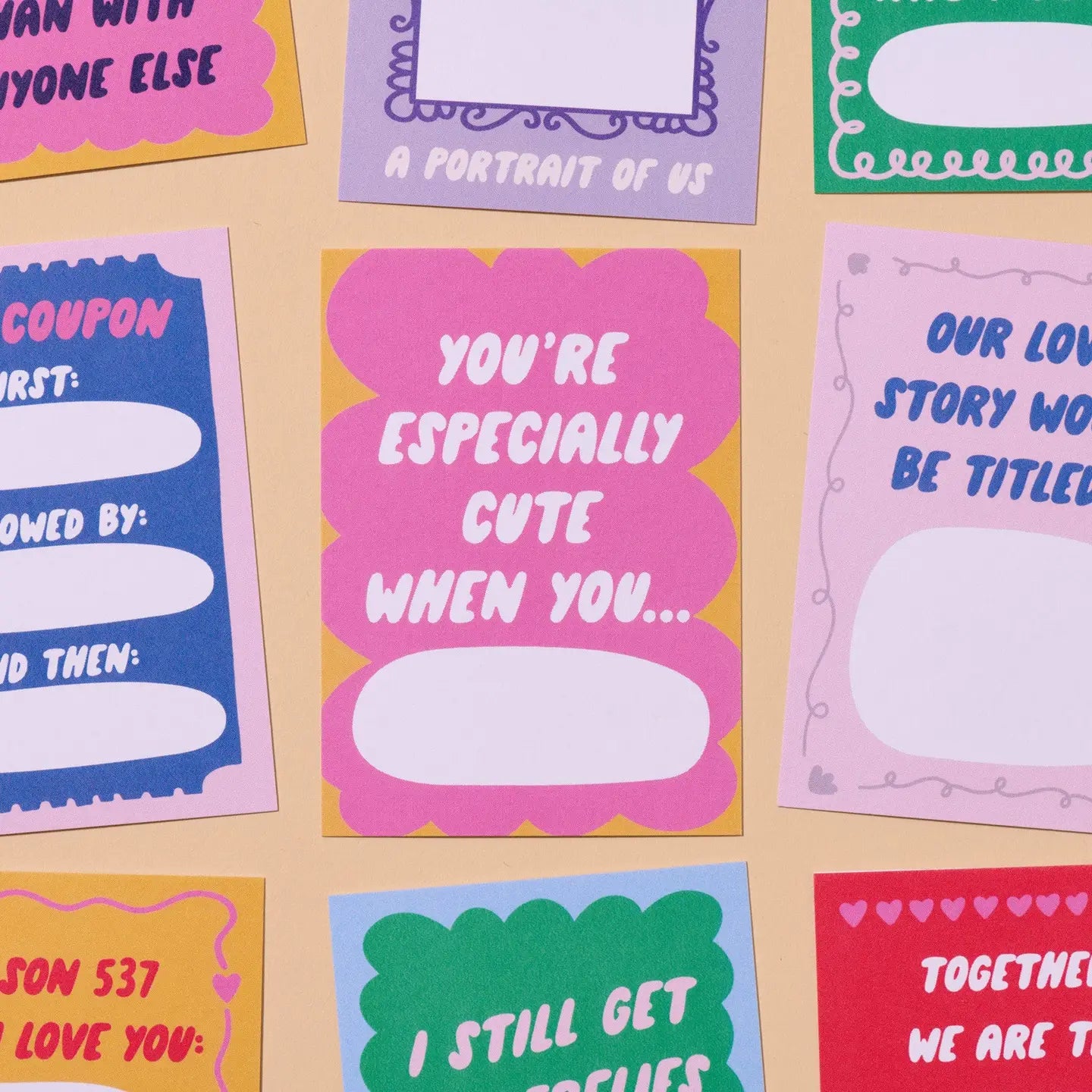 It's never been easier to leave a sweet nothing for your loved ones! This cute little box contains 40 different prompted cards to create silly notes, coupons or drawings. Tuck one in a coat pocket, behind a visor, on the fridge...