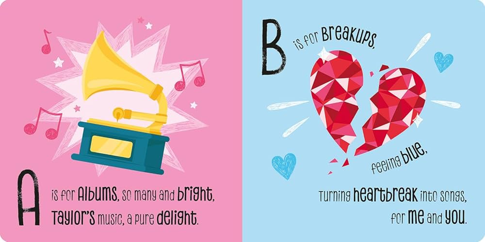 Celebrate legends who changed the world by singing along to rhyming ABC lullabies.Join Taylor Swift on an alphabet journey from smalltown beginnings to global stardom.A is for Albums, so many and bright, Taylor's music, a pure delight.B is for Breakups, feeling blue, Turning heartbreak into songs, for me and you.C is for Cats, her feline friends, Furry purry love, that never ends.Young children will love this vibrantly illustrated first biography and so will Swifties of all ages!