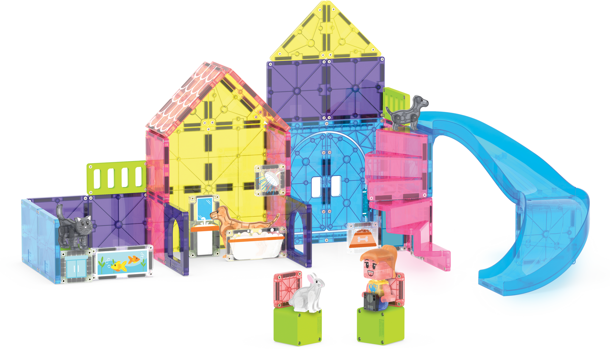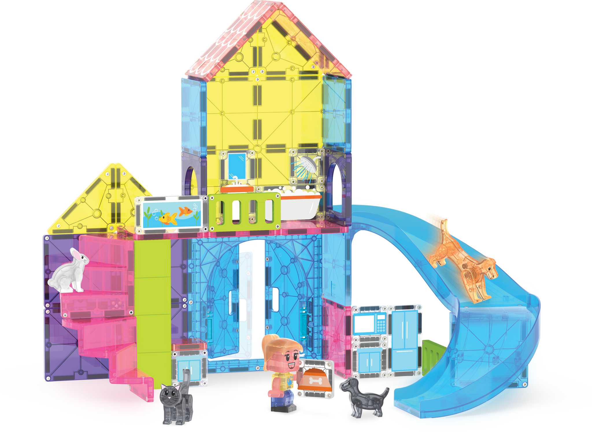 Step into a world where pets are here to play and creativity knows no bounds. With the MAGNA-TILES Pet Playhouse, kids can build the ultimate pet paradise for a playful puppy, a curious cat, a bouncy bunny, and their adventurous dog friend. Open the Double Door to a playhouse where your pets climb furniture, glide down the new Slide piece, and explore a space filled with endless imaginative possibilities.