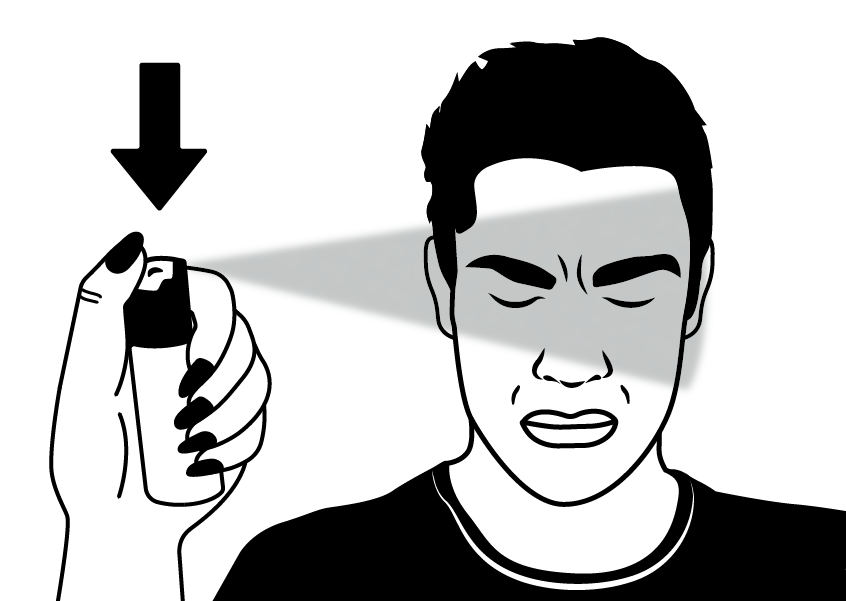 • Step 3 - Aim at his eyes and spray side to side, emptying the canister