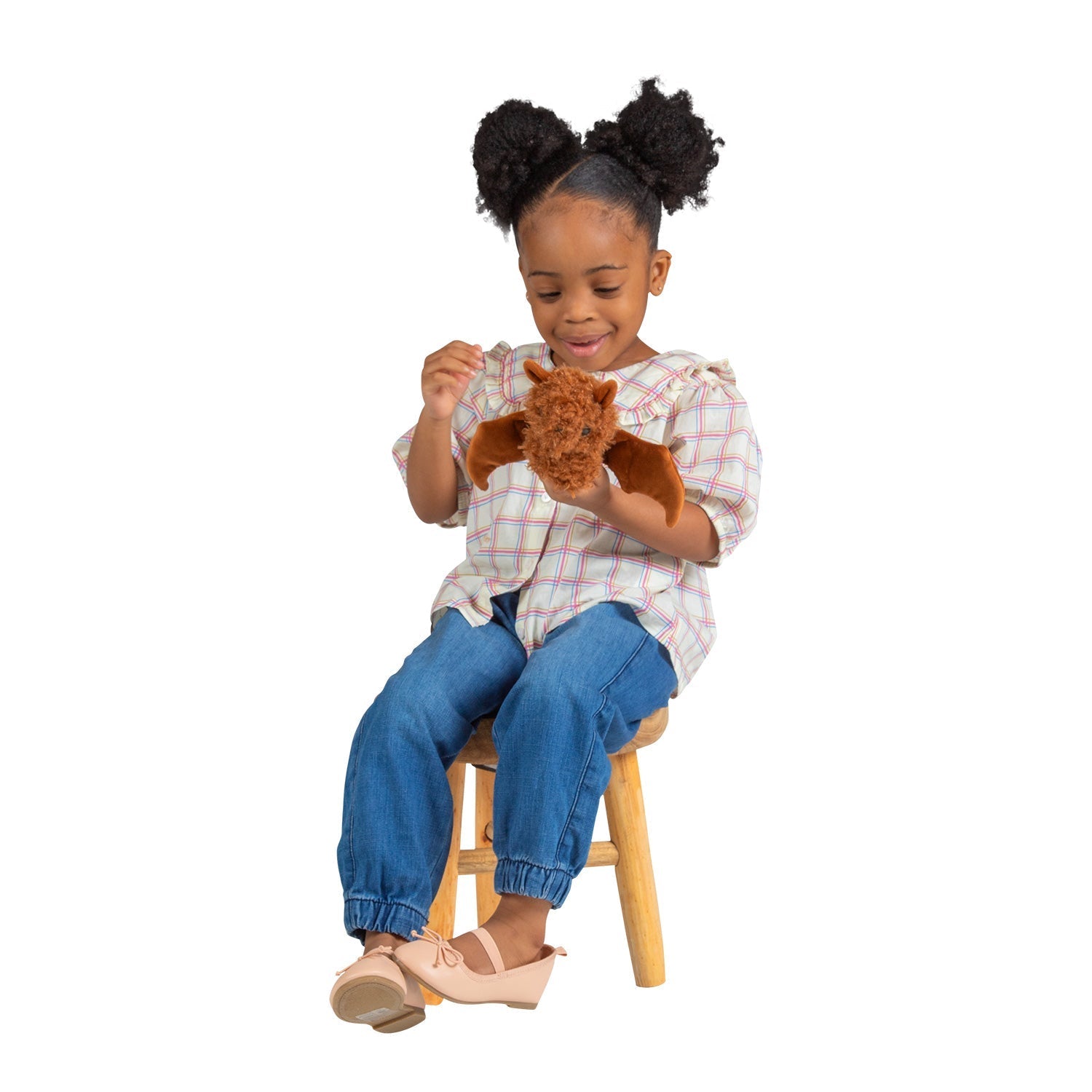 This delightful character is straight from the pages of Emily Winfield Martin's New York Times best-selling story books. The Little Friends Bat brings one of Emily's imaginative storybook illustrations to life. Covered in a variety of luxurious fabrics, this bitty bat comes complete with a sweet embroidered expression. Its under-stuffed design and weighted, fluffy fabric body make it extra snuggly, while the floppy wings add whimsy