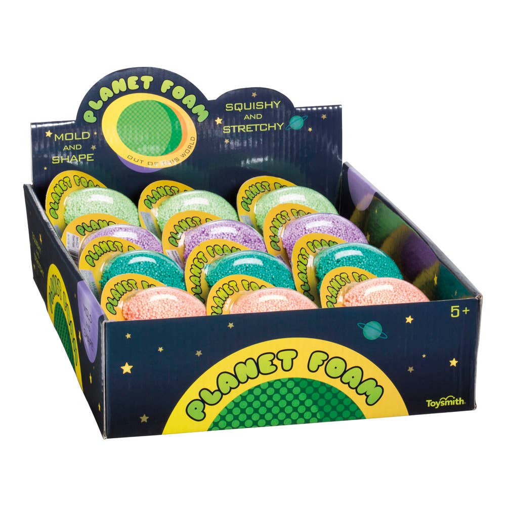 Inspired by the colorful and unique texture of the planets in outer space, Planet Foam from Toysmith is squishy and stretchy. This space-inspired putty comes in a planet-shaped plastic container. Each one holds about 0.18 ounces of foam putty in a bright color with a lightweight feel. Colors vary but may include green, purple, orange, and turquoise.