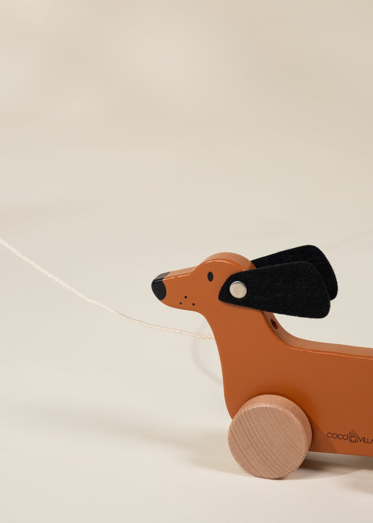 This wooden dog pull toy is designed for little walkers — just the right size for tiny hands to grasp and pull along on every adventure. With its playful wobble and gentle movement, it encourages motor skills, balance, and imaginative play. It’s a timeless companion for curious early explorers.