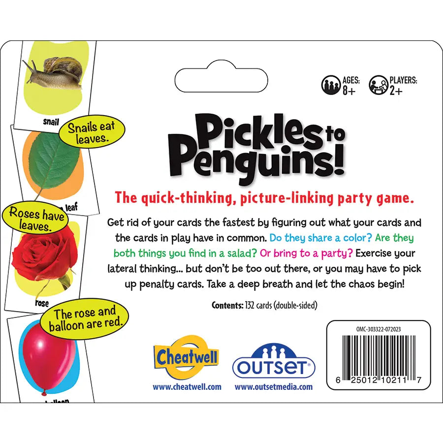 Think fast, make wild links, and get ready for a whirlwind of giggles, quick decisions, and clever thinking. Perfect for family vacations, game nights, classrooms, or spontaneous fun with friends, Pickles to Penguins is more than a game—it’s a portable memory-maker packed with energy and fun.