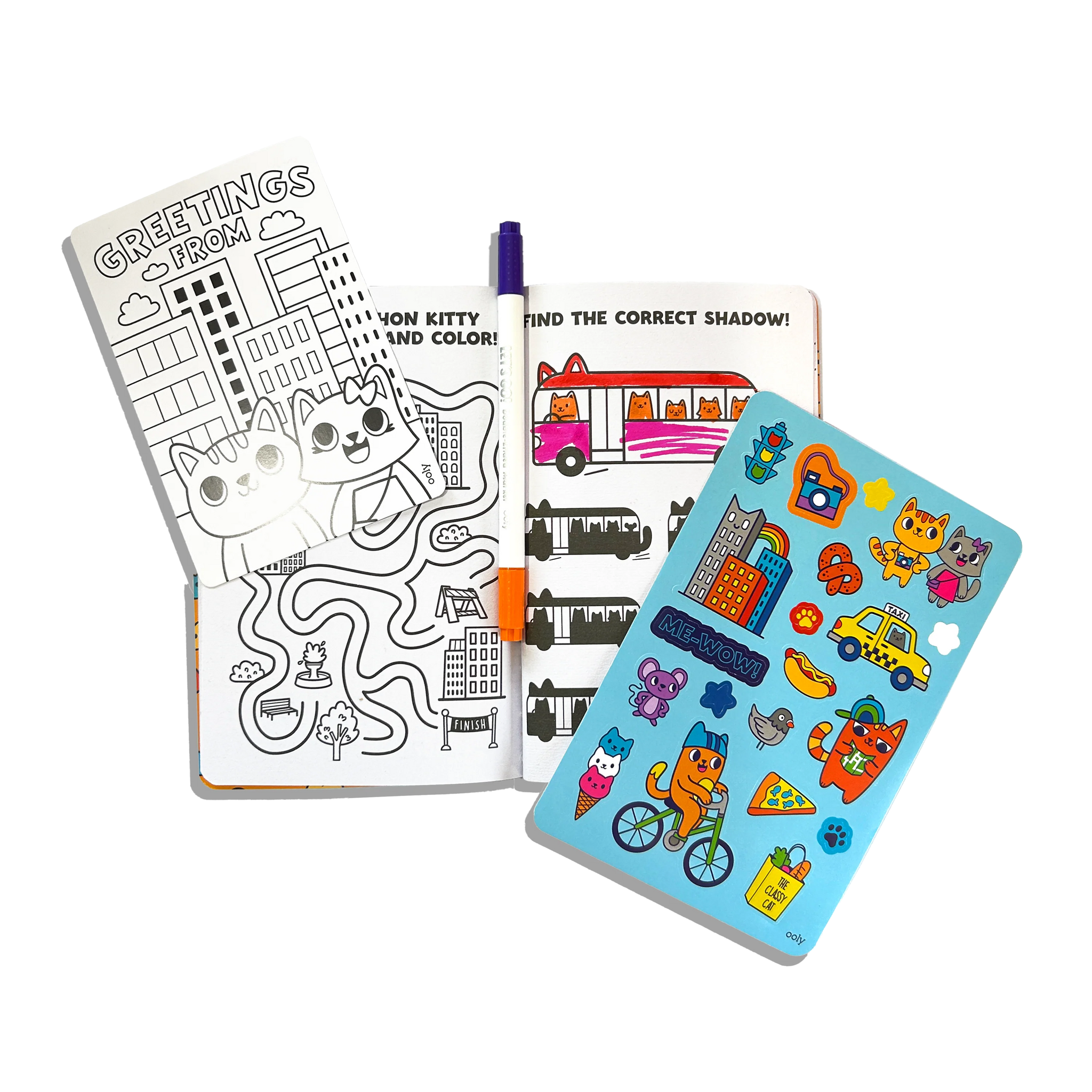 Step into a colorful world of creativity with the Let's Go! Activity & Coloring Kits! This kids' activity kit is packed with 40 pages of fun, including color-by-number, puzzles, word searches, and games, all featuring delightful cutie characters. With two sticker sheets, two postcards, and four double-ended markers with eight colors, this set has everything needed for hours of creative, mess-free fun.