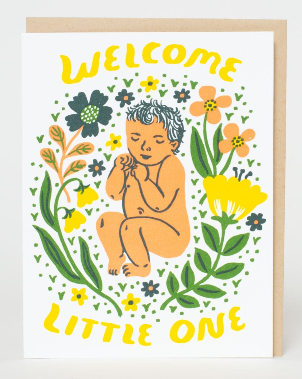 A selection of risograph printed card designs for greeting a new baby into the world!
