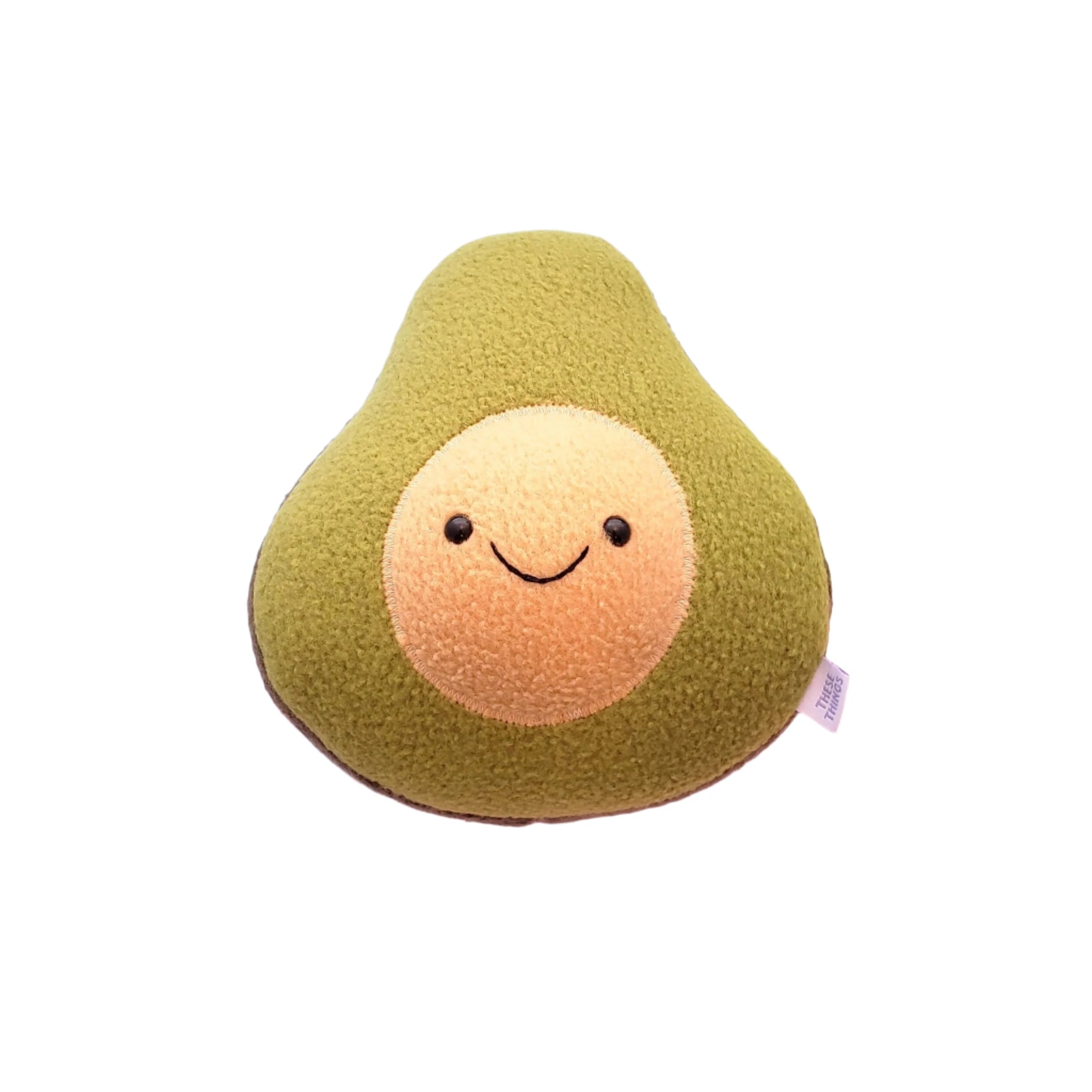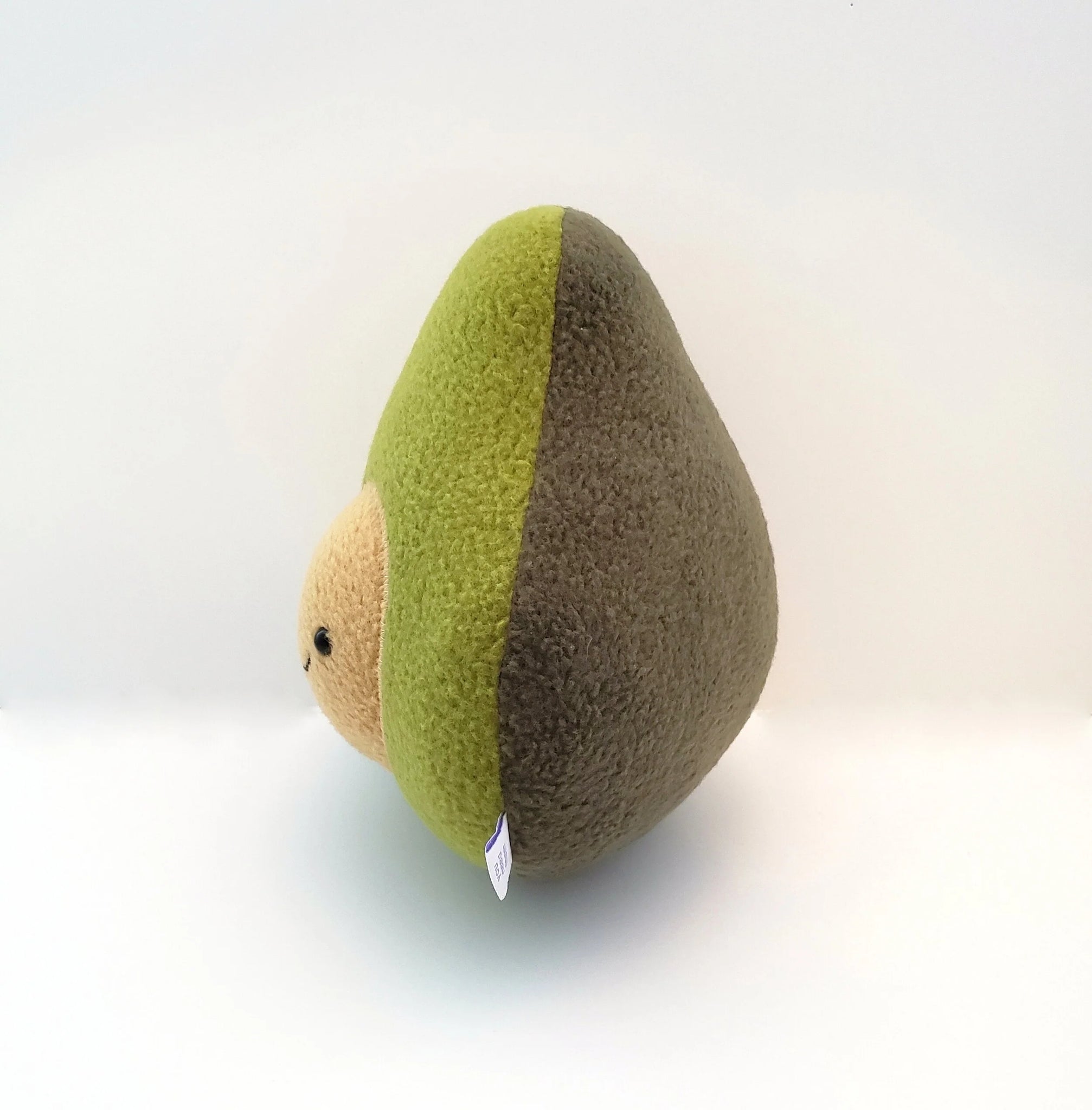 The front is constructed of a tan avocado pit, green flesh, and a deep green skin covers the back. Great for food lovers. Every face has black safety eyes and hand stitched smile.