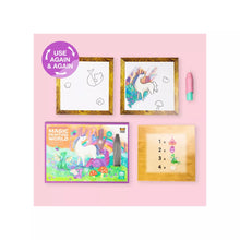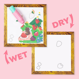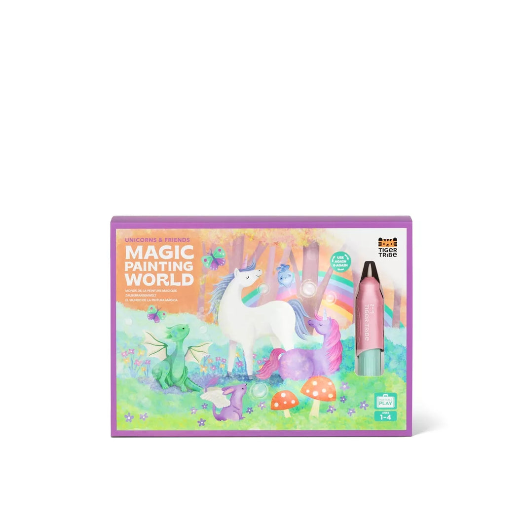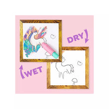 Water Coloring Book - Unicorn & Friends, is magical fun without the mess! Children can discover hidden pictures by painting them with a water brush. Once dry, the pictures disappear, allowing for multiple uses. The set includes 4 cards with forest fairy motifs and fun activities to engage little ones for hours. Ideal for children aged 1-4 years.