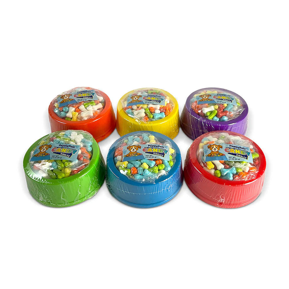 A candy creation inspired by their favorite pet will be the "pet" of your novelty candy selection. Puppy Palz Candy Kibbles is a playful treat, featuring crunchy candy pieces in a puppy bowl container.