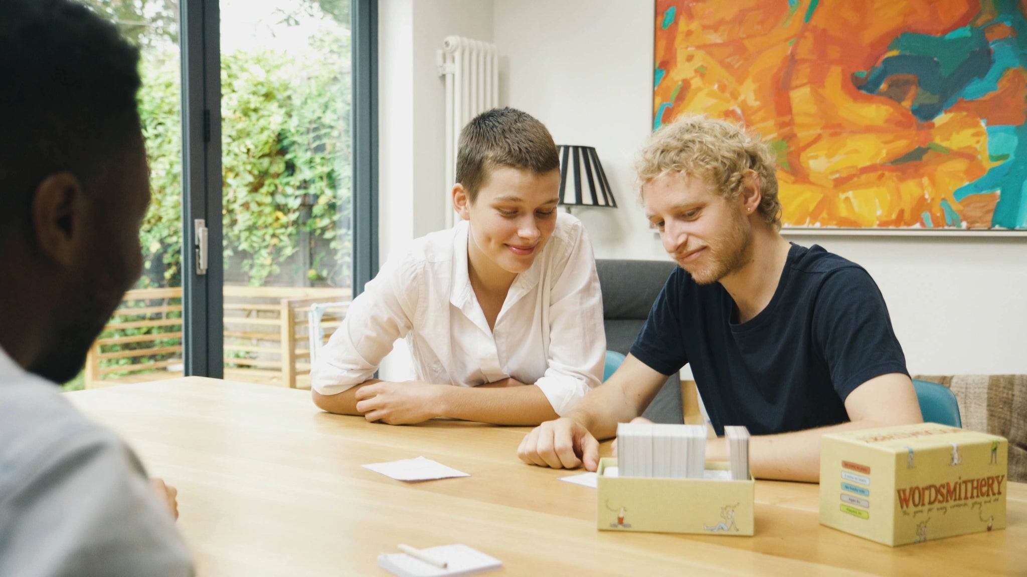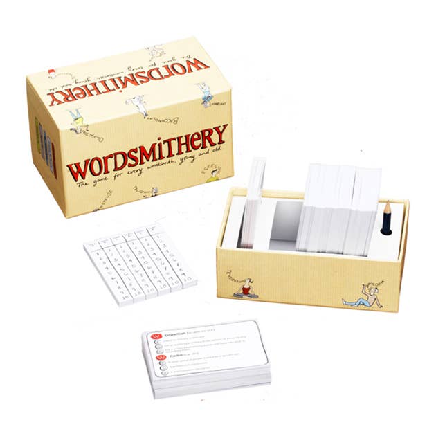 Wordsmithery is dead easy. Guess the meaning of the word. All 700 of our words are exactly the kind of words that you pretend to understand…when you don’t. Words like egregious, phalanx, and salubrious. Don’t worry. You get three possible – and fun – definitions to choose from. First to ten points wins. Over to you.