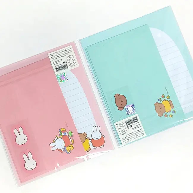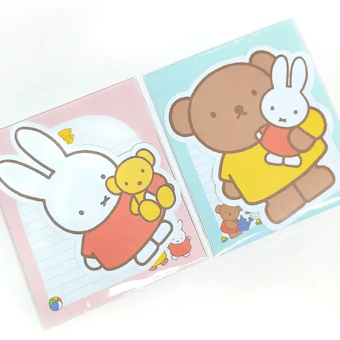 These are Miffy-themed letter sets featuring adorable designs of Miffy and her bear friends. Each set includes shaped writing paper with vibrant illustrations, perfect for sending heartfelt messages or adding a touch of charm to your notes.